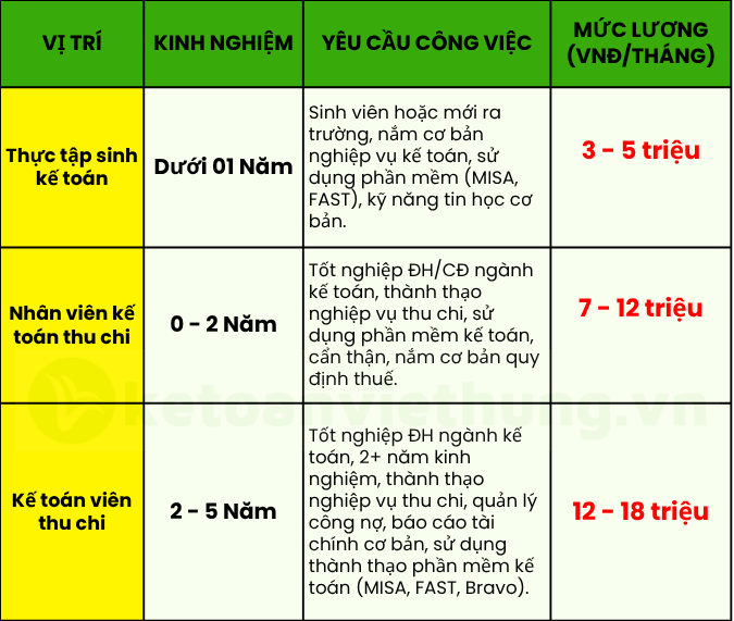 Mức lương của kế toán thu chi phụ thuộc vào nhiều yếu tố như kinh nghiệm, kỹ năng, và quy mô công ty. Tuy nhiên, nghề này vẫn mang đến cơ hội thu nhập ổn định và phát triển nghề nghiệp lâu dài.